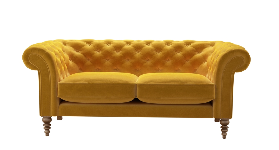 The Chesterfield gets a leggy new look. back cushions: see website color: yellow covers: see website seat cushions: see website size: 2.5 Seat Sofa