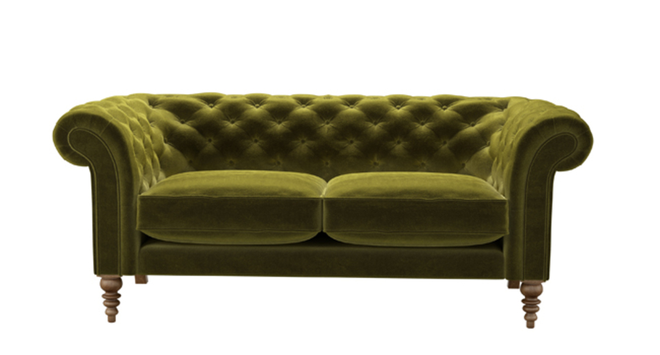 The Chesterfield gets a leggy new look. back cushions: see website color: green covers: see website seat cushions: see website size: 2.5 Seat Sofa