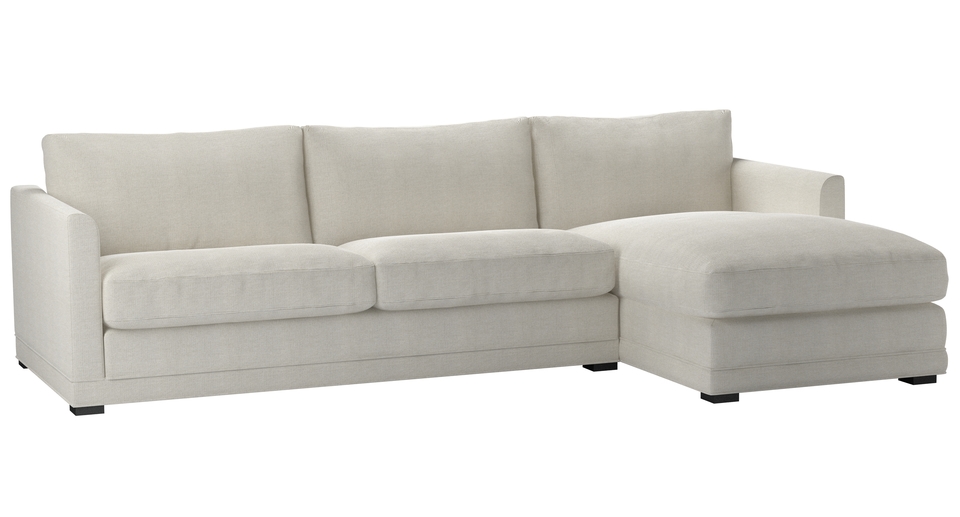 A sofa made for corners. back cushions: feather and fibre color: natural covers: fixed seat cushions: feather wrapped foam size: Large Right Hand Chaise