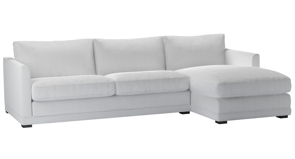 A sofa made for corners. back cushions: feather and fibre color: natural,white,grey covers: fixed seat cushions: feather wrapped foam size: Large Right Hand Chaise