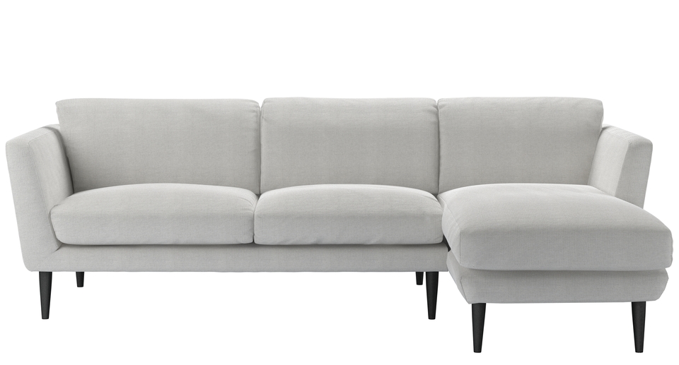 The Holly's retro-inspired shape and simple elegance is a nod to the sleek and curvy mid-century style. A neat frame - with high, splayed arms, a deep seat, and lots of comfy cushions - sits on tall tapered legs. This is one cool sofa. back cushions: 100% feather color: natural,white,grey covers: fixed seat cushions: feather wrapped foam size: Right Hand Chaise