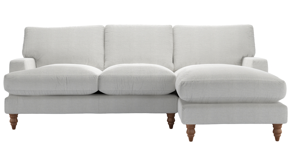 Our Isla mixes drawing room elegance with luxurious lounging. It sits on insanely smart turned wooden legs, and would grace any environment with refined style. As beautiful as the Scottish island it's named after. back cushions: feather and quallofil fibre color: natural,white,grey covers: loose seat cushions: quallofil fibre wrapped foam size: Right Hand Chaise