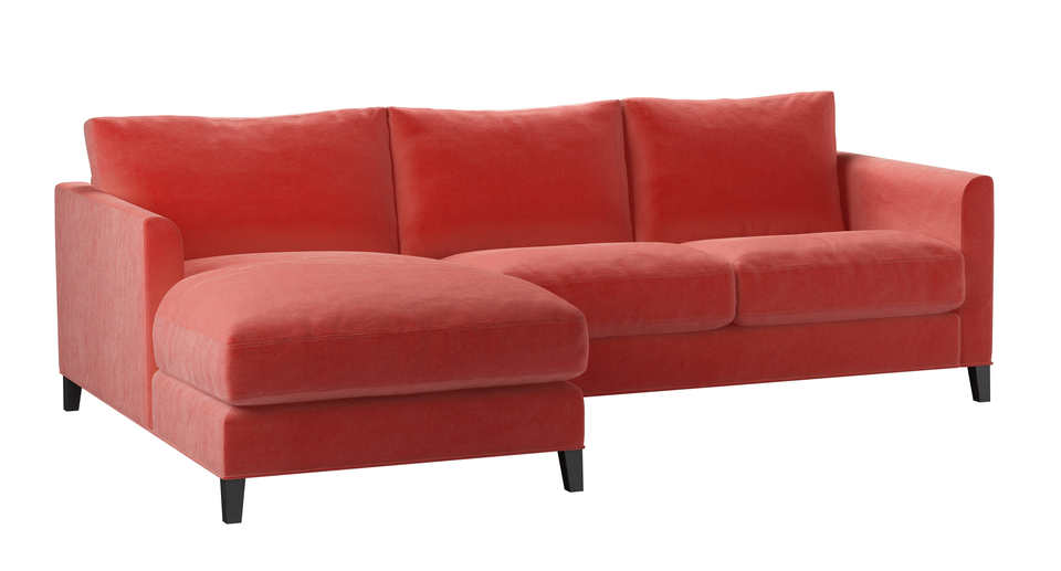The Izzy's modest and contemporary style is perfect for practical and simple living. A straight-edged frame - with structured arms, plump cushioned seats and tall oak legs - make this one comfy sofa. The Izzy is also available in a modular form that enables you to create a sofa that is the perfect size and style for your home. back cushions: feather and fibre color: pink covers: fixed seat cushions: feather wrapped foam size: Small Left Hand Chaise