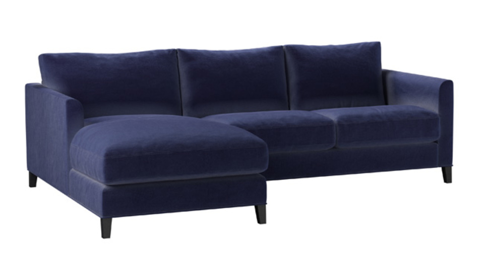 The Izzy's modest and contemporary style is perfect for practical and simple living. A straight-edged frame - with structured arms, plump cushioned seats and tall oak legs - make this one comfy sofa. The Izzy is also available in a modular form that enables you to create a sofa that is the perfect size and style for your home. back cushions: feather and fibre color: blue covers: fixed seat cushions: feather wrapped foam size: Small Left Hand Chaise
