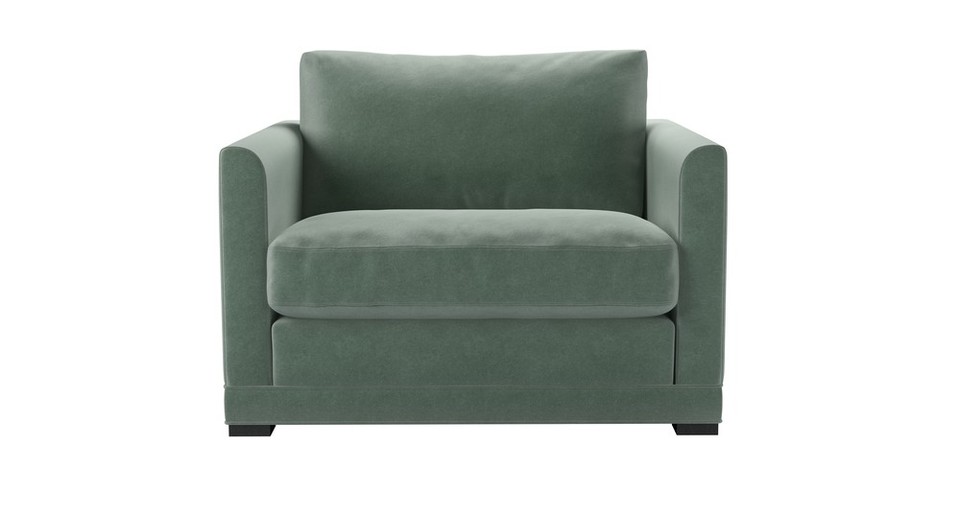Simple, elevated style that prioritises comfort. Svelte arms with an inner curve maximise the sumptuous seating space. The Aissa has sleek lines stitched into its base that lies close to the floor, giving it a contemporary feel. back cushions: feather and fibre color: green covers: fixed seat cushions: feather wrapped foam size: Loveseat