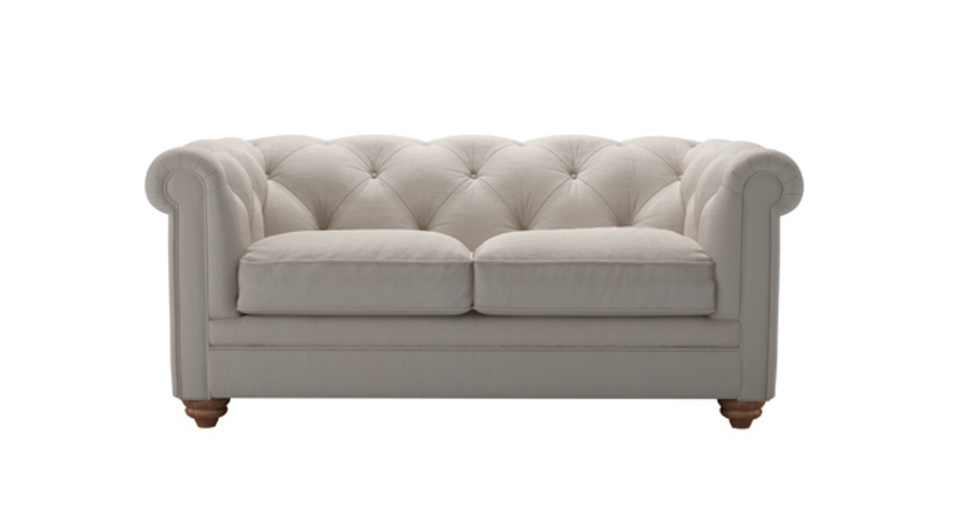 The Patrick is a fine fellow, exceptionally crafted to create the detailed, buttoned and pleated back that you see. Based on the classic Chesterfield design, ours offers superior comfort too! back cushions: see website color: grey,natural covers: see website seat cushions: see website size: Two Seat Sofa