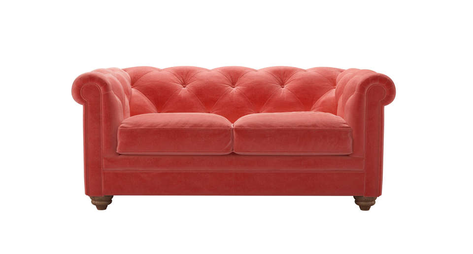 The Patrick is a fine fellow, exceptionally crafted to create the detailed, buttoned and pleated back that you see. Based on the classic Chesterfield design, ours offers superior comfort too! back cushions: see website color: pink covers: see website seat cushions: see website size: Two Seat Sofa