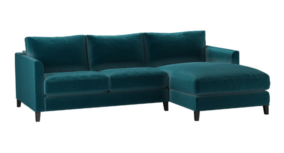 The Izzy's modest and contemporary style is perfect for practical and simple living. A straight-edged frame - with structured arms, plump cushioned seats and tall oak legs - make this one comfy sofa. The Izzy is also available in a modular form that enables you to create a sofa that is the perfect size and style for your home. back cushions: feather and fibre color: green,blue covers: fixed seat cushions: feather wrapped foam size: Small Right Hand Chaise