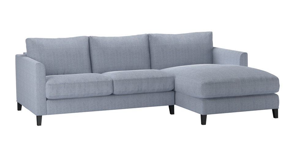The Izzy's modest and contemporary style is perfect for practical and simple living. A straight-edged frame - with structured arms, plump cushioned seats and tall oak legs - make this one comfy sofa. The Izzy is also available in a modular form that enables you to create a sofa that is the perfect size and style for your home. back cushions: feather and fibre color: blue covers: fixed seat cushions: feather wrapped foam size: Small Right Hand Chaise