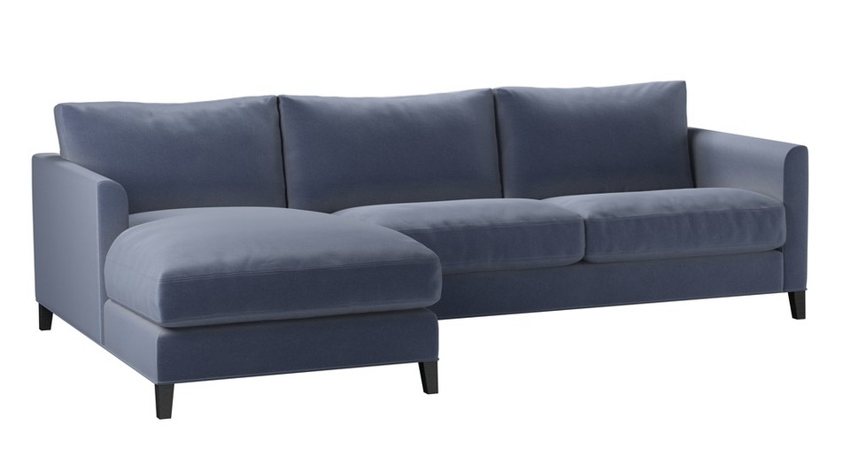 The Izzy's modest and contemporary style is perfect for practical and simple living. A straight-edged frame - with structured arms, plump cushioned seats and tall oak legs - make this one comfy sofa. The Izzy is also available in a modular form that enables you to create a sofa that is the perfect size and style for your home. back cushions: feather and fibre color: blue covers: fixed seat cushions: feather wrapped foam size: Medium Left Hand Chaise