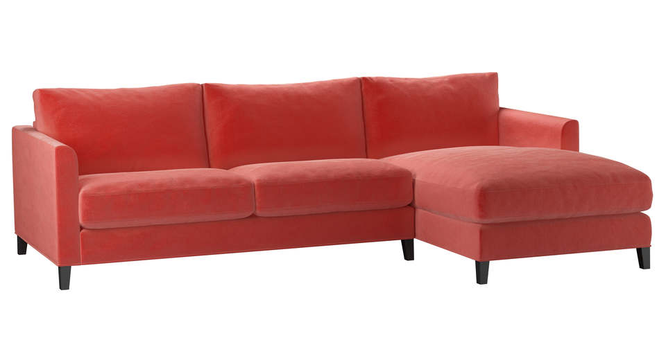 The Izzy's modest and contemporary style is perfect for practical and simple living. A straight-edged frame - with structured arms, plump cushioned seats and tall oak legs - make this one comfy sofa. The Izzy is also available in a modular form that enables you to create a sofa that is the perfect size and style for your home. back cushions: feather and fibre color: pink covers: fixed seat cushions: feather wrapped foam size: Medium Right Hand Chaise
