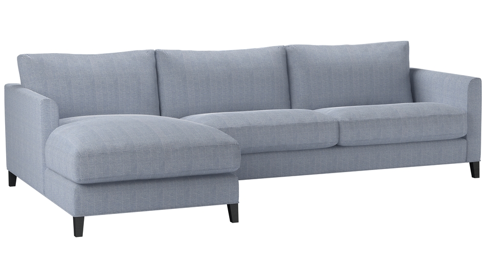 The Izzy's modest and contemporary style is perfect for practical and simple living. A straight-edged frame - with structured arms, plump cushioned seats and tall oak legs - make this one comfy sofa. The Izzy is also available in a modular form that enables you to create a sofa that is the perfect size and style for your home. back cushions: feather and fibre color: blue covers: fixed seat cushions: feather wrapped foam size: Large Left Hand Chaise