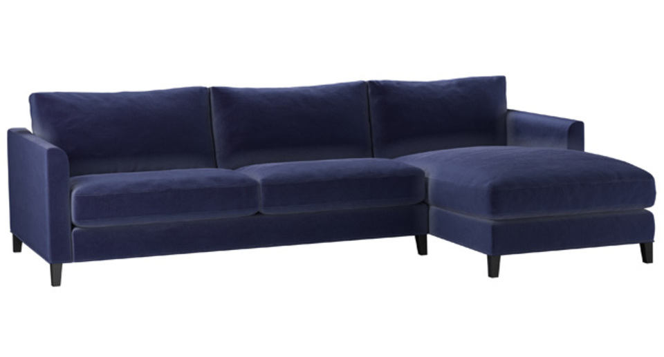 The Izzy's modest and contemporary style is perfect for practical and simple living. A straight-edged frame - with structured arms, plump cushioned seats and tall oak legs - make this one comfy sofa. The Izzy is also available in a modular form that enables you to create a sofa that is the perfect size and style for your home. back cushions: feather and fibre color: blue covers: fixed seat cushions: feather wrapped foam size: Large Right Hand Chaise