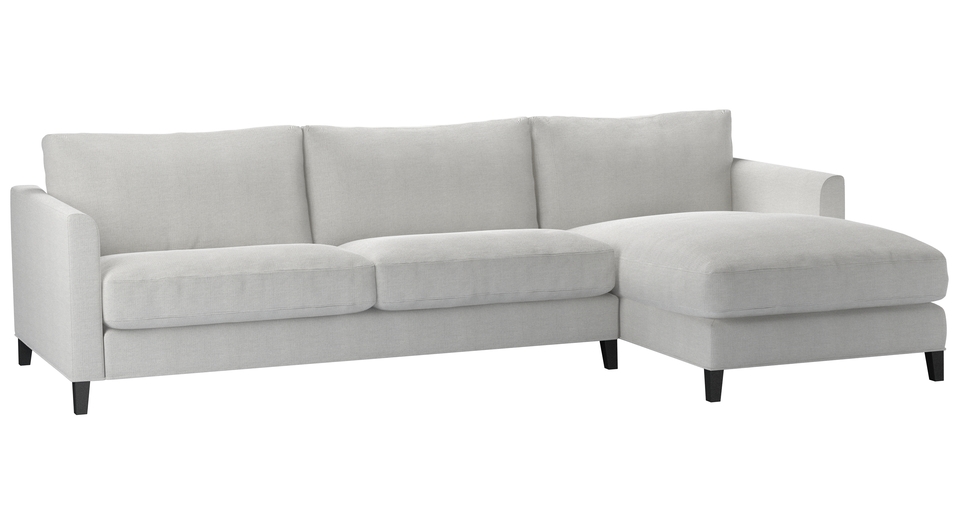 The Izzy's modest and contemporary style is perfect for practical and simple living. A straight-edged frame - with structured arms, plump cushioned seats and tall oak legs - make this one comfy sofa. The Izzy is also available in a modular form that enables you to create a sofa that is the perfect size and style for your home. back cushions: feather and fibre color: natural,white,grey covers: fixed seat cushions: feather wrapped foam size: Large Right Hand Chaise
