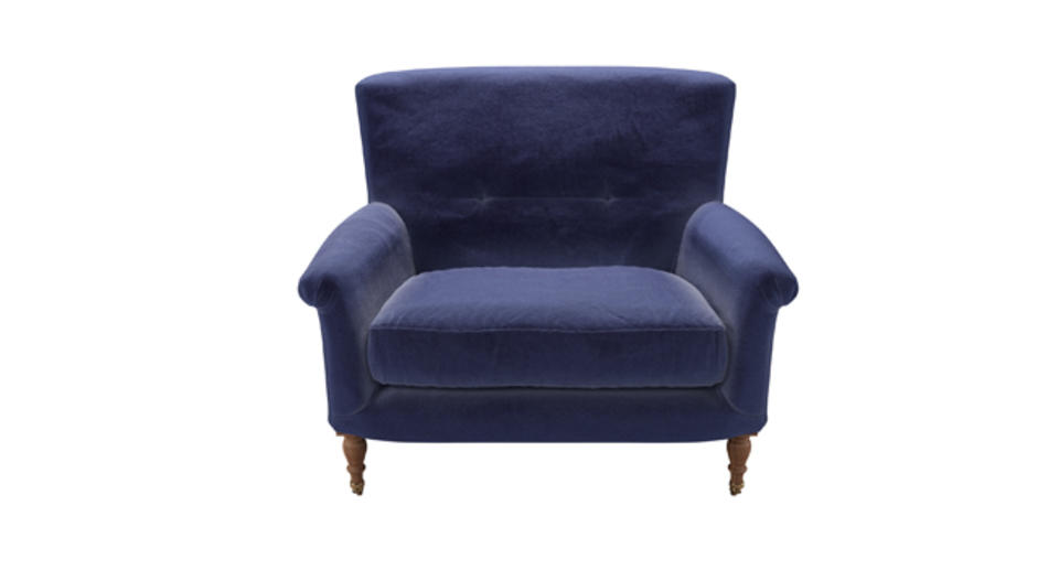 Some chairs are merely good-looking, this one is both handsome and hugely comfortable. back cushions: see website color: blue covers: see website seat cushions: see website size: Loveseat