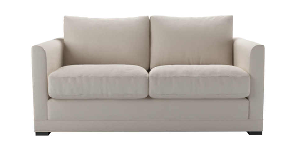 A sofa made for living. back cushions: feather and fibre color: natural covers: fixed seat cushions: feather wrapped foam size: Two Seat Sofa