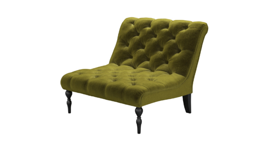 A buttoned and tufted seat of pure joy. back cushions: see website color: green covers: see website seat cushions: see website size: Loveseat