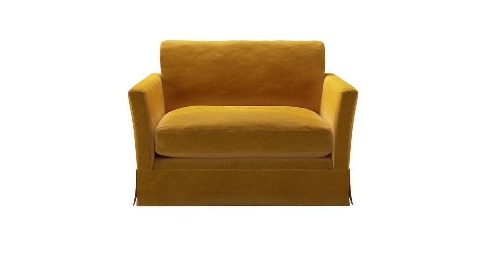 A simple scandi design, this modern take on a traditional armchair has been made with comfort in mind. The perfect casual design to elevate your everyday, with feather wrapped cushions for a plush seat to serenity. Its fully removable covers make it easy to clean, plus you can refresh your look with new covers so you can keep the style you love for longer! back cushions: feather and quallofil fibre color: yellow covers: loose seat cushions: feather wrapped quallofil fibre size: Loveseat