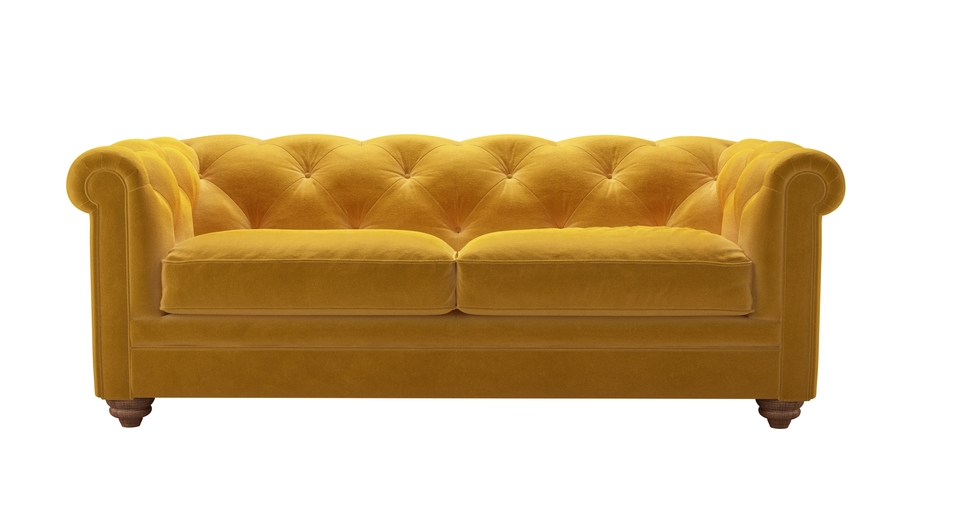 The Patrick is a fine fellow, exceptionally crafted to create the detailed, buttoned and pleated back that you see. Based on the classic Chesterfield design, ours offers superior comfort too! back cushions: see website color: yellow covers: see website seat cushions: see website size: 2.5 Seat Sofa