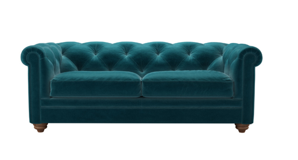 The Patrick is a fine fellow, exceptionally crafted to create the detailed, buttoned and pleated back that you see. Based on the classic Chesterfield design, ours offers superior comfort too! back cushions: see website color: green,blue covers: see website seat cushions: see website size: 2.5 Seat Sofa