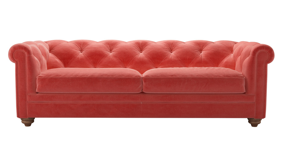 The Patrick is a fine fellow, exceptionally crafted to create the detailed, buttoned and pleated back that you see. Based on the classic Chesterfield design, ours offers superior comfort too! back cushions: see website color: pink covers: see website seat cushions: see website size: Three Seat Sofa