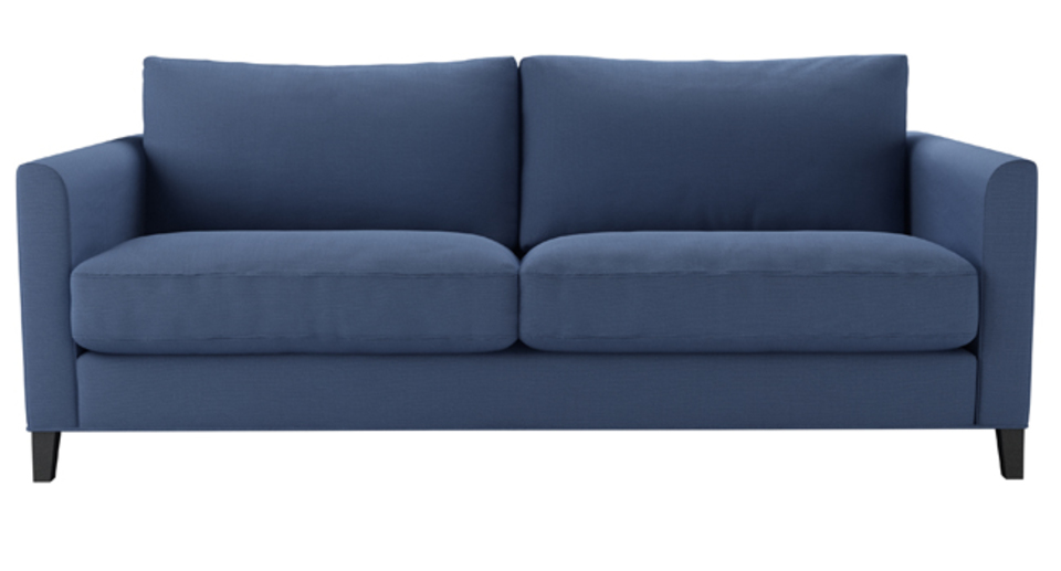 The Izzy's modest and contemporary style is perfect for practical and simple living. A straight-edged frame - with structured arms, plump cushioned seats and tall oak legs - make this one comfy sofa. The Izzy is also available in a modular form that enables you to create a sofa that is the perfect size and style for your home. back cushions: feather and fibre color: blue covers: fixed seat cushions: feather wrapped foam size: Three Seat Sofa