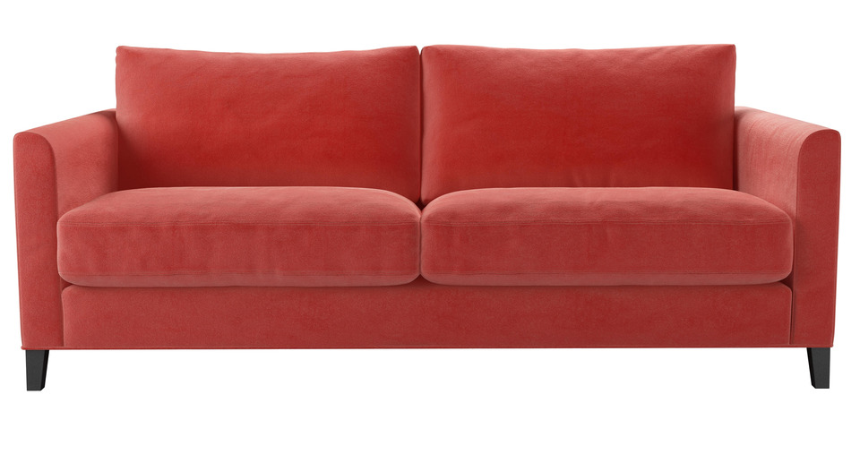 The Izzy's modest and contemporary style is perfect for practical and simple living. A straight-edged frame - with structured arms, plump cushioned seats and tall oak legs - make this one comfy sofa. The Izzy is also available in a modular form that enables you to create a sofa that is the perfect size and style for your home. back cushions: feather and fibre color: pink covers: fixed seat cushions: feather wrapped foam size: Three Seat Sofa