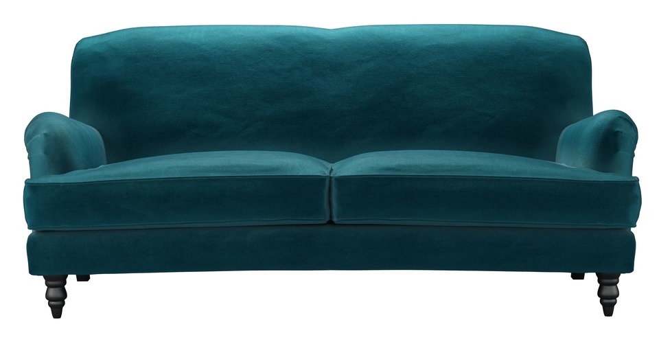 Snowdrop 3 Seat Sofa in Deep Turquoise Cotton Matt Velvet