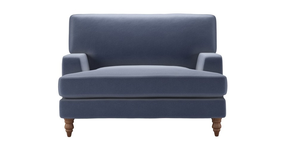 Our Isla mixes drawing room elegance with luxurious lounging. It sits on insanely smart turned wooden legs, and would grace any environment with refined style. Please note that when ordered in our leather fabrics, the covers are fixed and therefore cannot be removed like other textile upholstery options. However, the cushion covers are fully removable on all Isla sofas. back cushions: feather and quallofil fibre color: blue covers: removable covers seat cushions: fibre wrapped foam size: Loveseat