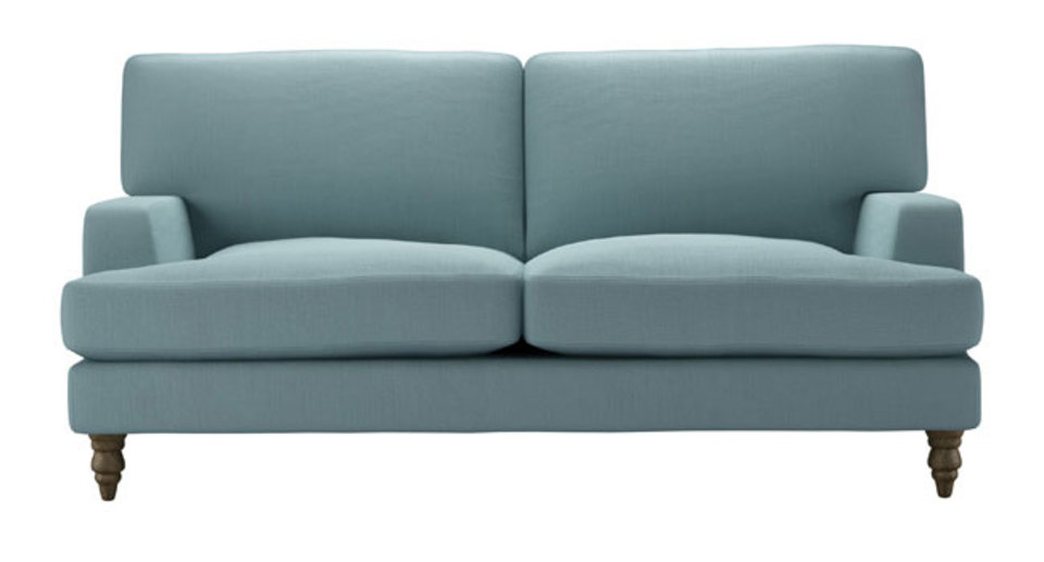 Our Isla mixes drawing room elegance with luxurious lounging. It sits on insanely smart turned wooden legs, and would grace any environment with refined style. As beautiful as the Scottish island it's named after. back cushions: feather and quallofil fibre color: blue covers: removable covers seat cushions: fibre wrapped foam size: 2.5 Seat Sofa