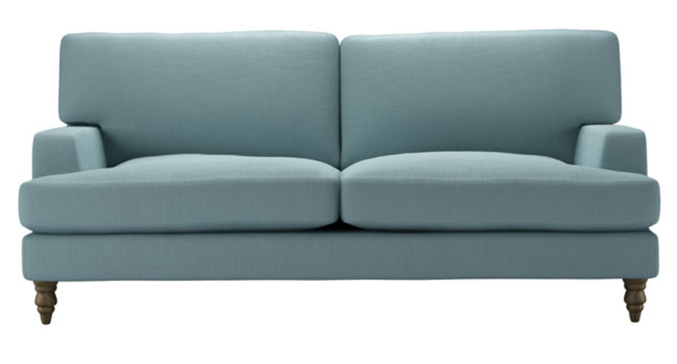 Our Isla mixes drawing room elegance with luxurious lounging. It sits on insanely smart turned wooden legs, and would grace any environment with refined style. As beautiful as the Scottish island it's named after. back cushions: feather and quallofil fibre color: blue covers: removable covers seat cushions: fibre wrapped foam size: Three Seat Sofa