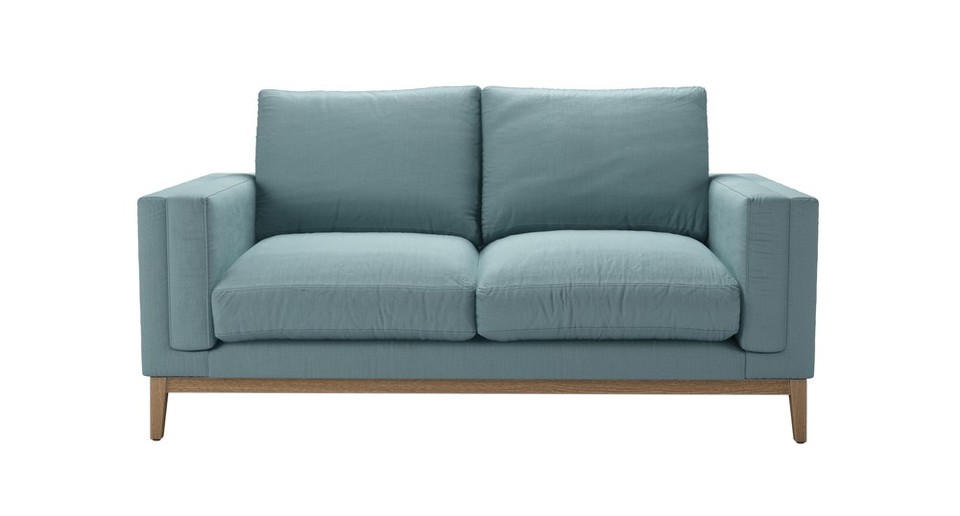 Costello has a simple shape that doesn't compromise on comfort as its plump seat and back cushions are nestled between two sumptuous arms. It has removable cushion covers allowing them to be easily cleaned or replaced and its simple design makes it incredibly versatile. Resting upon either a wooden plinth (or available with stunning chrome legs), this striking sofa design will give a mid-century feel to any living space. back cushions: feather and quallofil color: blue covers: removable seat cushions: quallofil fibre wrapped foam size: Two Seat Sofa