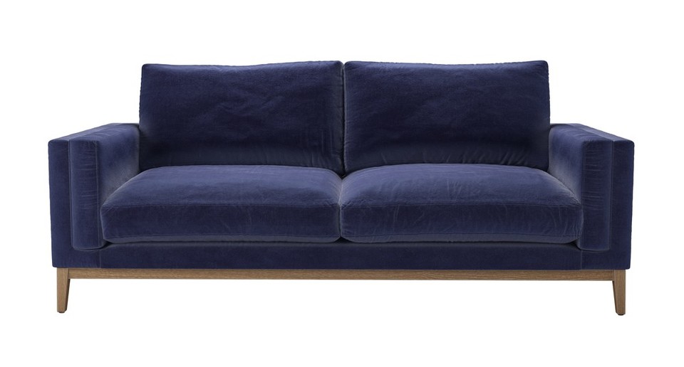 Costello has a simple shape that doesn't compromise on comfort as its plump seat and back cushions are nestled between two sumptuous arms. It has removable cushion covers allowing them to be easily cleaned or replaced and its simple design makes it incredibly versatile. Resting upon either a wooden plinth (or available with stunning chrome legs), this striking sofa design will give a mid-century feel to any living space. back cushions: feather and quallofil color: blue covers: removable seat cushions: quallofil fibre wrapped foam size: Three Seat Sofa
