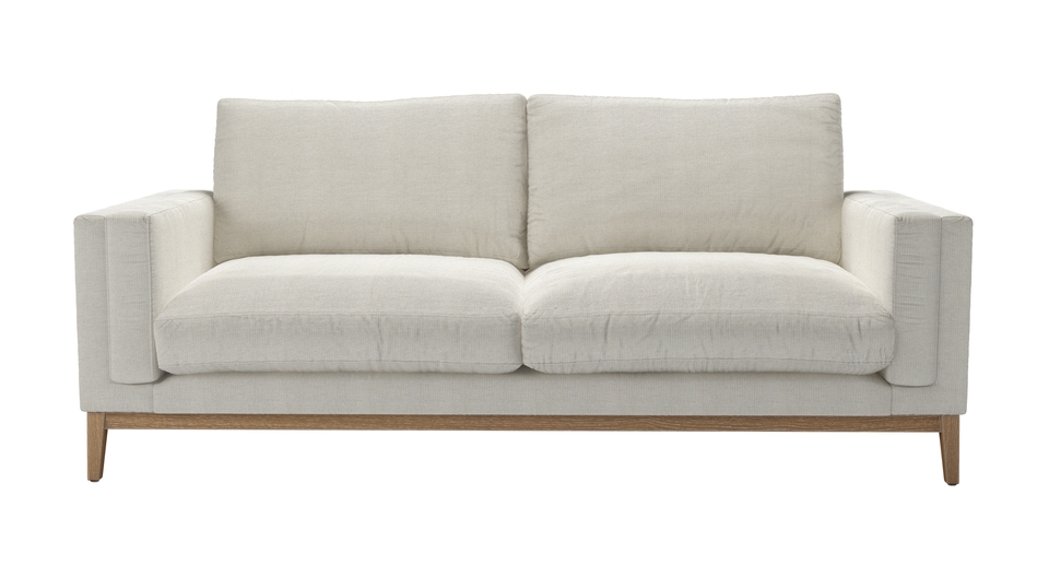 Costello has a simple shape that doesn't compromise on comfort as its plump seat and back cushions are nestled between two sumptuous arms. It has removable cushion covers allowing them to be easily cleaned or replaced and its simple design makes it incredibly versatile. Resting upon either a wooden plinth (or available with stunning chrome legs), this striking sofa design will give a mid-century feel to any living space. back cushions: feather and quallofil color: natural covers: removable seat cushions: quallofil fibre wrapped foam size: Three Seat Sofa