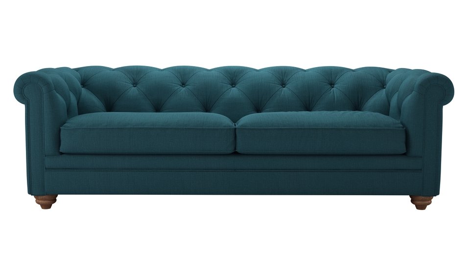 The Patrick is a fine fellow, exceptionally crafted to create the detailed, buttoned and pleated back that you see. Based on the classic Chesterfield design, ours offers superior comfort too! back cushions: see website color: green covers: see website seat cushions: see website size: Three Seat Sofa