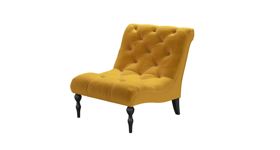 A buttoned and tufted seat of pure joy. back cushions: see website color: yellow covers: see website seat cushions: see website size: Armchair