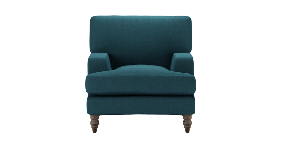 Our Isla mixes drawing room elegance with luxurious lounging. It sits on insanely smart turned wooden legs, and would grace any environment with refined style. Please note that when ordered in our leather fabrics, the covers are fixed and therefore cannot be removed like other textile upholstery options. However, the cushion covers are fully removable on all Isla sofas. back cushions: feather and quallofil fibre color: green covers: loose seat cushions: fibre wrapped foam size: Small Armchair