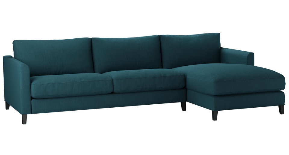 The Izzy's modest and contemporary style is perfect for practical and simple living. A straight-edged frame - with structured arms, plump cushioned seats and tall oak legs - make this one comfy sofa. The Izzy is also available in a modular form that enables you to create a sofa that is the perfect size and style for your home. back cushions: feather and fibre color: green covers: fixed seat cushions: feather wrapped foam size: Large Right Hand Chaise