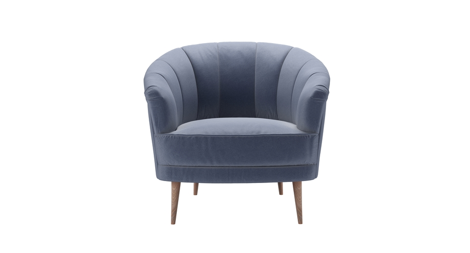 Deliciously decadent, this chair will have you charmed from the start. back cushions: see website color: blue covers: see website seat cushions: see website size: Armchair