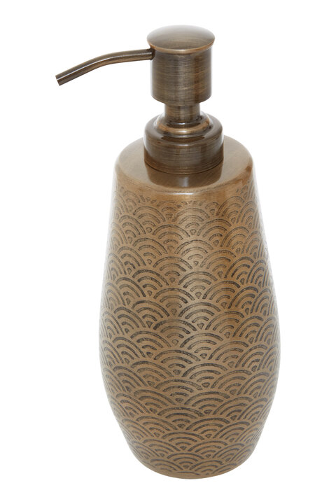 Made from robust metal, this soap dispencer has warm metallic finish with removable pump head. This versatile soap dispencer with hard-wearing black etched detail fits neatly in the case making it an ideal product for home office bathroom. Colours: Gold Material Compositions: Plastic 10%,Aluminium 90% Materials: Synthetic/Metal Assembled Product Weight (kg): 0.3 Batteries Included: N Batteries Required: N Hob Safe - Ceramic (y/n): N Hob Safe - Electric (y/n): N Hob Safe - Gas (y/n): N Hob Safe - Halogen (y/n): N Hob Safe - Induction (y/n): N Appliance Safety - Dishwasher (y/n): N Appliance Safety - Freezer (y/n): N Appliance Safety - Microwave (y/n): N Appliance Safety - Oven (y/n): N Item Assembled: N Care & Use: Wipe clean with a soft cloth. Do not use abrasive cleaners