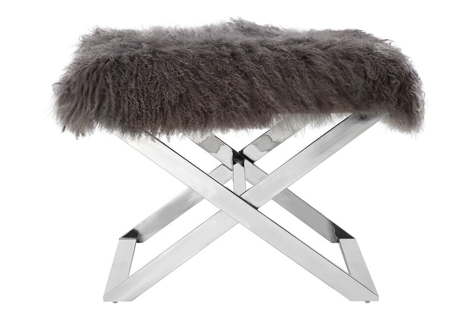The seat is covered with natural wool, coloured grey to complement the reflective silver finish of the crossed legs. It lends a touch of luxe style to the living room. materials: Metal, Wood composition:50% Copper, 50% Glass Capacity: 120Kg Care & Use Instr: "Wipe with a soft cloth do not use abrasive cleaners. Please note, this product composition contains natural wood, variations in colour may apply." Dishwasher Safe: N Electric Hob Safe: N Freezer Safe: N Gas Hob Safe: N Halogen Hob Safe: N Induction Hob Safe: N Materials: Metal, Wood Microwave Safe: N Oven Safe: N Product Depth: 51 Product Height: 45 Product Weight (kg): 7.1 Product Width: 62 Item Assembled: Y