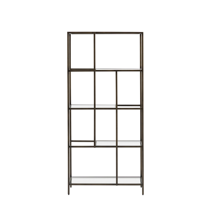 A sleek, engineered occasional collection, featuring a slender metal frame with an inlaid bevelled clear glass table top. These stunning glass pieces will add a touch of sophistication to any styled interior. Now available in 3 finishes, champagne, bronze and silver, this elegant collection sits comfortably in all interiors Material: Glass / Iron Assembly Required: Yes - shelves only Anti Topple Kit: Yes Additional Information: 5mm tempered glass