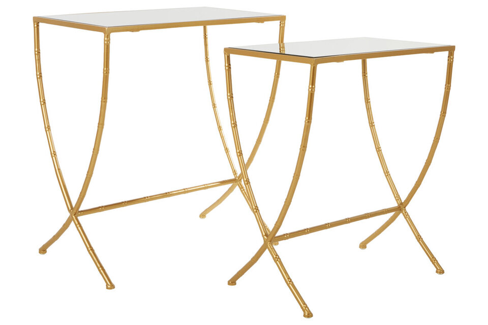 Avantis set of 2 rectangular side tables the gold finish adds a luxurious flourish. Mirrored glass is set into each top to enhance the reflective aesthetic. Part of the Avantis collection of side tables, they can be styled with warm metallic accent pieces and lighting." materials: Glass, Metal composition:Metal, Wood, Natural Capacity: 30Kg Care & Use Instr: Wipe Clean With A Soft Cloth. Do Not Use Abrasive Cleaners. Dishwasher Safe: N Electric Hob Safe: N Freezer Safe: N Gas Hob Safe: N Halogen Hob Safe: N Induction Hob Safe: N Materials: Glass, Metal Microwave Safe: N Oven Safe: N Product Depth: 35 Product Height: 63 Product Weight (kg): 7.9 Product Width: 55 Item Assembled: Y