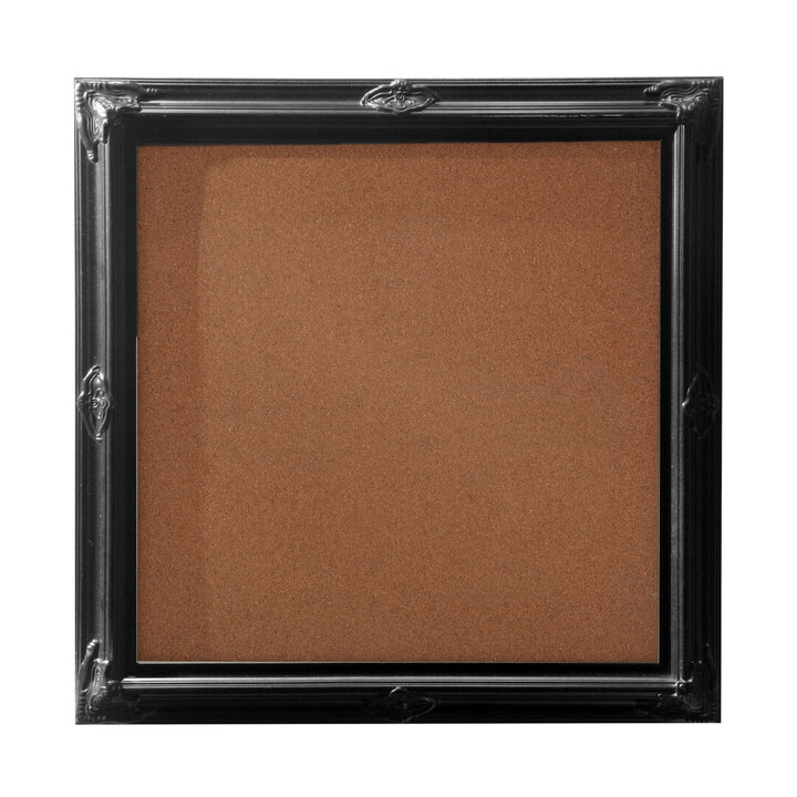 "A tried and tested way to keep your thoughts organised, our black frame memo board is a simple way to have notes at hand in your bedroom or kitchen. The durable and lightweight frame is made from high quality plastic and features a decorative design in the four corners giving the memo board a charming look. A soft cork board ensures it's easy to pin your shopping list, takeaway menus, work notes and whatever else you need reminded of. Hooks on the back allow for easy attachment to your wall, so make sure you don't forget special occasions, or milk, using our memo board."