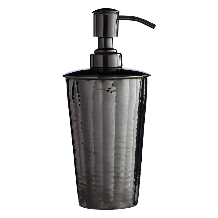 This tumbler has a tapering design, with a smooth top surface and pump to contrast with the hammered design on the main body. It has a 450ml capacity, and its pump unscrews easily to allow one to deposit liquid soap or hand moisturiser. Colours:Silver Material Compositions: Stainless Steel 100% {Materials: |||Materials}{Assembled Product Weight (kg): \m|||Assembled Product Weight (kg)}{Armrest Height: \m|||Armrest Height}{Batteries Included: \m|||Batteries Included}{Batteries Required: \m|||Batteries Required}{Battery Info: \m|||Battery Info}{Bulb Included: \m|||Bulb Included}{Bulb Info: \m|||Bulb Info}{Bulb Wattage: \m|||Bulb Wattage}{Capacity: \m|||Capacity}{Floor to Seat Height: \m|||Floor to Seat Height}{Floor to Under Seat: \m|||Floor to Under Seat}{Hob Safe - Ceramic (y/n): \m|||Hob Safe - Ceramic (y/n)}{Hob Safe - Electric (y/n): \m|||Hob Safe - Electric (y/n)}{Hob Safe - Gas (y/n): \m|||Hob Safe - Gas (y/n)}{Hob Safe - Halogen (y/n): \m|||Hob Safe - Halogen (y/n)}{Hob Safe - Induction (y/n): \m|||Hob Safe - Induction (y/n)}{Appliance Safety - Dishwasher (y/n): \m|||Appliance Safety - Dishwasher (y/n)}{Appliance Safety - Freezer (y/n): \m|||Appliance Safety - Freezer (y/n)}{Appliance Safety - Microwave (y/n): \m|||Appliance Safety - Microwave (y/n)}{Appliance Safety - Oven (y/n): \m|||Appliance Safety - Oven (y/n)}{Appliance Safety - Machine Washable (y/n): \m|||Appliance Safety - Machine Washable (y/n)}{Headboard Dims: \m|||Headboard Dims}{Lamp Base Dimensions: \m|||Lamp Base Dimensions}{Lamp Shade Dimensions: \m|||Lamp Shade Dimensions}{Measurement Between Chair Legs: \m|||Measurement Between Chair Legs}{Measurement Between Table Legs: \m|||Measurement Between Table Legs}{Mirror Hung - H or V: \m|||Mirror Hung - H or V}{Seated Area Dimensions: \m|||Seated Area Dimensions}{Sofa Inner Height: \m|||Sofa Inner Height}{Sofa Inner Width: \m|||Sofa Inner Width}{Sofabed (with bed unfolded) Depth: \m|||Sofabed (with bed unfolded) Depth}{Sofabed (with bed unfolded) Inner Leg Height: \m|||Sofabed (with bed unfolded) Inner Leg Height}{Sofabed Mattress Included: \m|||Sofabed Mattress Included}{Suitable for Outdoors: \m|||Suitable for Outdoors}{Table Diameter: \m|||Table Diameter}{Table Height: \m|||Table Height}{Vase Base: \m|||Vase Base}{Vase Diameter: \m|||Vase Diameter}{Voltage Rating: \m|||Voltage Rating}{Item Assembled: \m|||Item Assembled} Care & Use: "Wash In Warm Soapy Water, Do Not Soak"