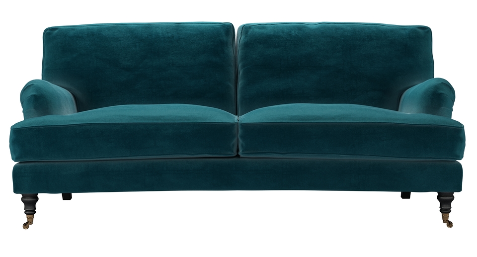Bluebell 3 Seat Sofa in Deep Turquoise Cotton Matt Velvet