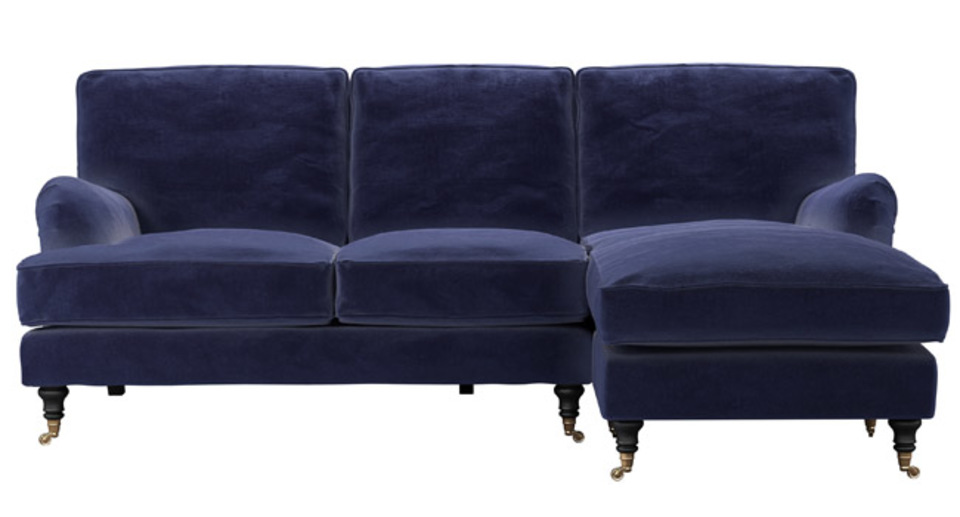 Bluebell RHF Chaise Sofa in Prussian Blue Cotton Matt Velvet