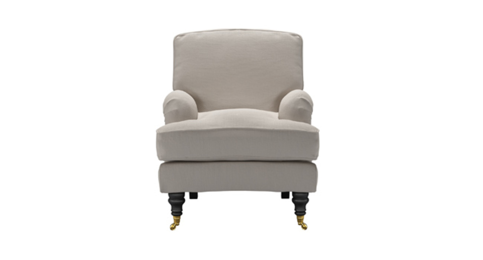 A classic design and one of our most popular sofas. back cushions: feather and fibre color: grey,natural covers: fixed seat cushions: feather wrapped foam size: Small Armchair