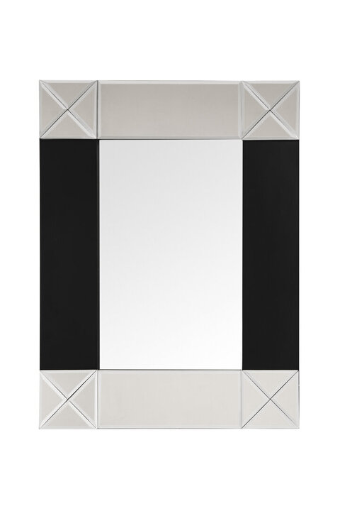 The bevelled diagonal crosses on the corners of the Boulevard mirror express symmetry. Made from strong MDF, the frame features contrasting black and reflective glass sides. materials: Wood/Glass composition:MDF 0%,Mirrored Glass 0% colour: Silver, Black Care & Use Instr: Wipe clean with a soft cloth. Do not use abrasive cleaners Dishwasher Safe: N Electric Hob Safe: N Freezer Safe: N Gas Hob Safe: N Halogen Hob Safe: N Induction Hob Safe: N Materials: Wood/Glass Microwave Safe: N Oven Safe: N Product Depth: 4 Product Height: 64 Product Weight (kg): 7 Product Width: 83.5 Item Assembled: Y Courier Service: BSTAR 1MAN