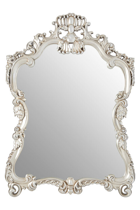 Its curving cartouche frame evokes neoclassical sophistication thanks to the curling acanthus leaf motifs and clamshell detailing. With its silvery champagne finish it can be coordinated with metallic lighting and ornaments. A metal hook is positioned at materials: Wood, Glass, Synthetic composition:MDF 10%,Polyurethane 50%,Glass 40% colour: Gold Care & Use Instr: Wipe clean with a soft cloth. Do not use abrasive cleaners Dishwasher Safe: N Electric Hob Safe: N Freezer Safe: N Gas Hob Safe: N Halogen Hob Safe: N Induction Hob Safe: N Materials: Wood, Glass, Synthetic Microwave Safe: N Oven Safe: N Product Depth: 4 Product Height: 115 Product Weight (kg): 7 Product Width: 82 Can Mirror be Hung Horizontally and Vertically?: Y Item Assembled: Y Courier Service: BSTAR 1MAN